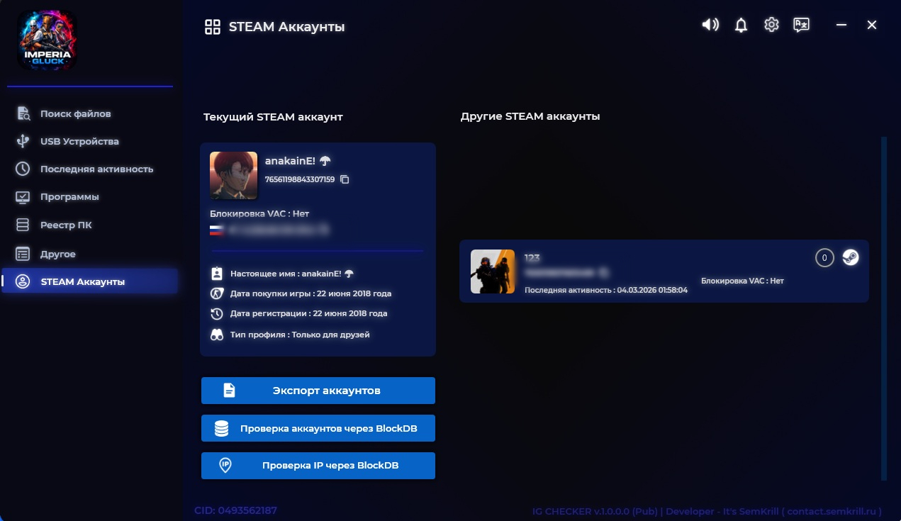 🔹 Поиск Steam-аккаунтов